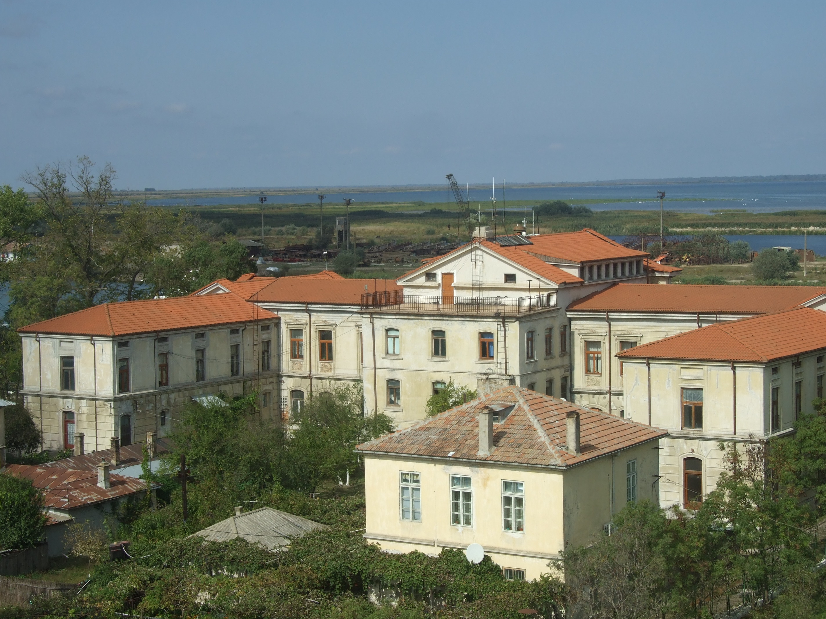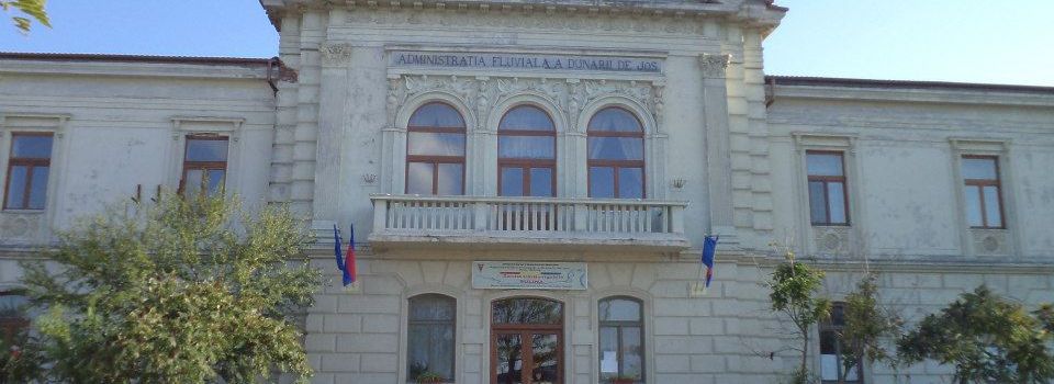 Intre anii 1941 si 1944, aici a functionat Comandamentul militar German. In timpul celui de-al Doilea Razboi Mondial, imobilul a fost incendiat, ramanand doar peretii din caramida. Cladirea a suferit in timp, recompartimentari interioare nesemnificative. Imaginile vechi sugereaza prezenta unor acrotere la extremitatile frontonului principal, disparute de mult timp. Arhitectura cladirii, care are anvergura unei universitati, se incadreaza in stilul neoclasic., cu o compozitie simetrica in plan si spatiu. Cladirea se afla pe strada nr a I-a chiar langa portul unde acosteaza vapoarele de pasageri si parcul din Sulina. Acum in aceasta cladire isi are sediul Administratia Fluviala a Dunarii de Jos.